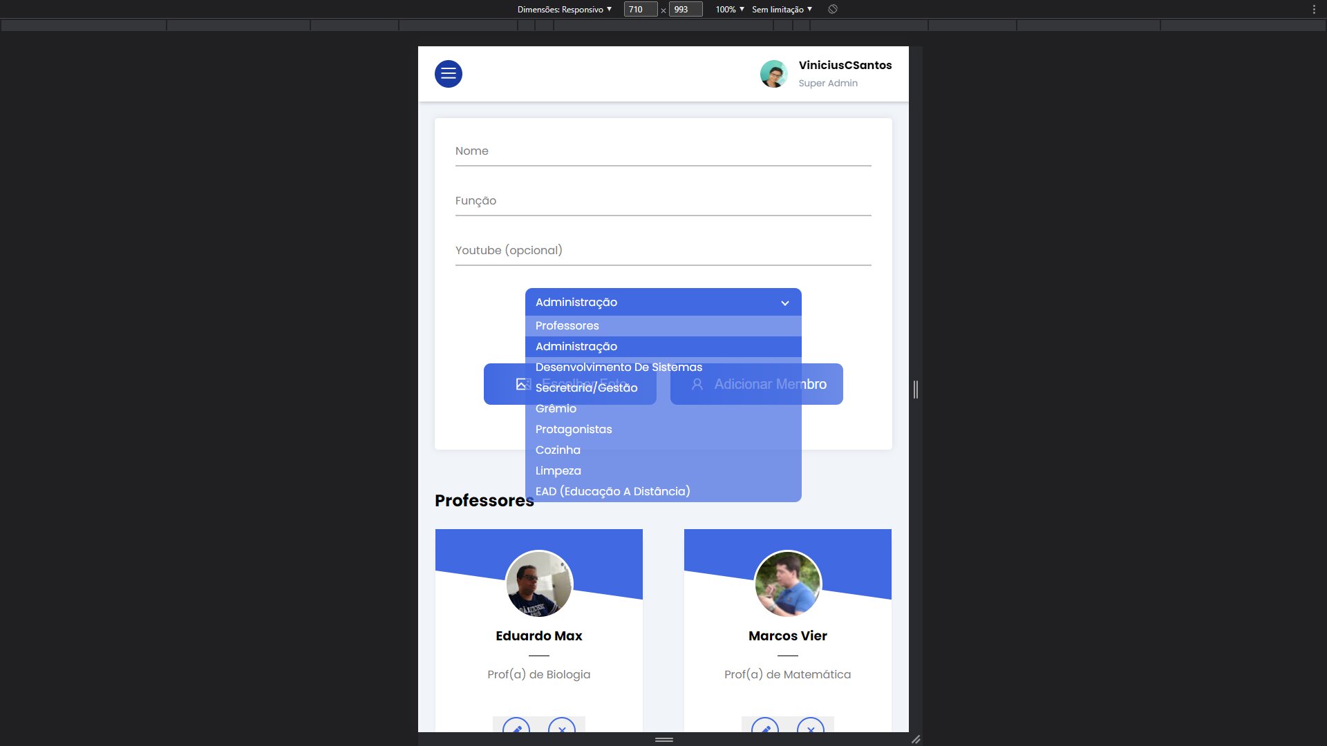Responsive dashboard project developed for the ETE school.